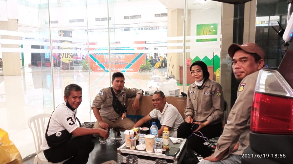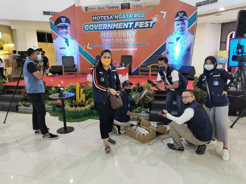 Giat Dinas Komunikasi dan Informatika Kota Palu Sabtu, 19 Juni 2021 di Palu Grand Mall (PGM) untuk memfasilitasi dan mengadakan peliputan pelaksanaan acara “Hadi – Reny First 100 Days” yang diselenggarakan oleh Pemerintah Kota Palu Melalui Badan Perencanaan Pembangunan Daerah Kota Palu dan Forum Komunikasi Pembangunan.